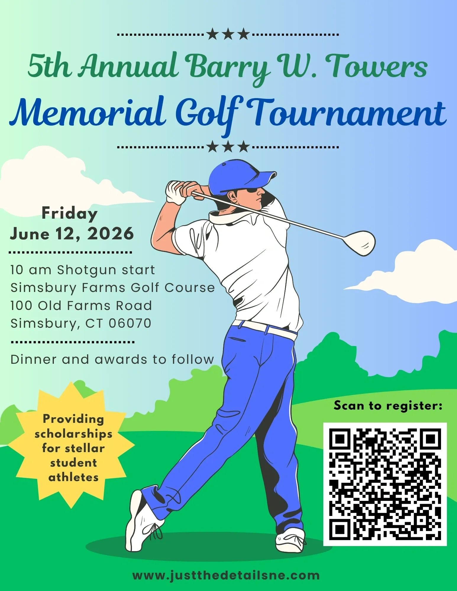 Barry W. Towers Memorial Scholarship is a 501(c)(3) nonprofit organization dedicated to providing scholarships for stellar student athletes. It was founded in 2020 by Brandan Towers, Barry's son, as a way to remember Barry for the amazing influence he had by honoring student athletes who are following in his path. The organization has since grown to remember and recognize additional honorees, including Richard Towers, Dan Williamson, and Sharon Mekal. All proceeds provided to and raised by the Barry W. Memorial Scholarship are given to student athletes at the annual golf tournament awards ceremony.